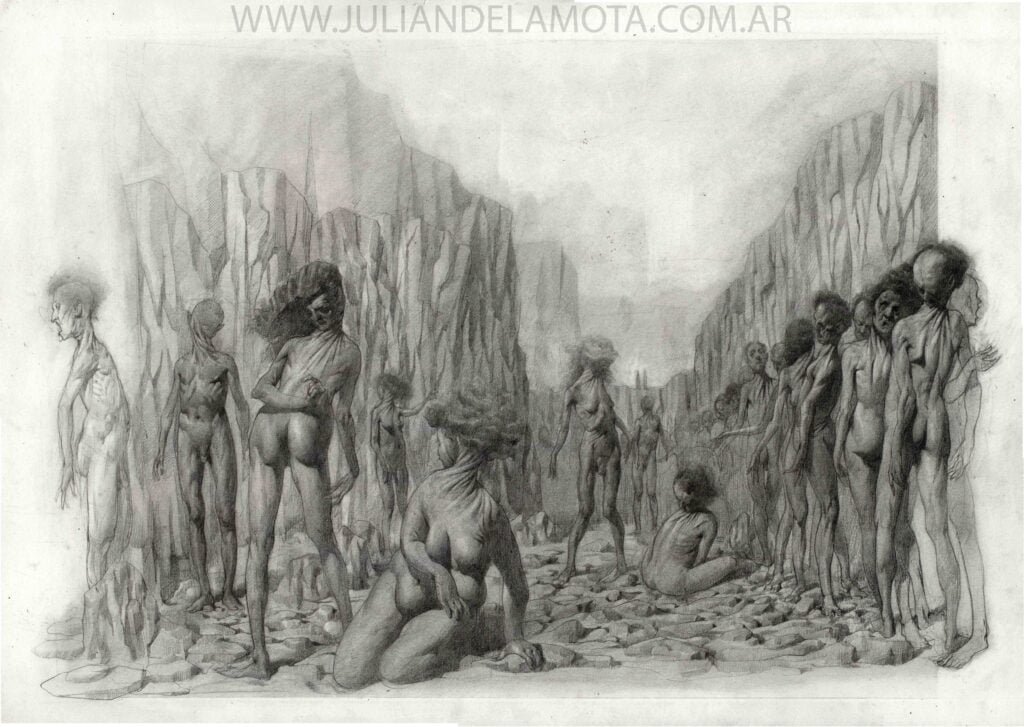 Perteneciente al libro «Infierno de Dante Alighieri» con traducción de Alejandro Crotto e ilustraciones de Julián de la Mota. Editado por Audisea